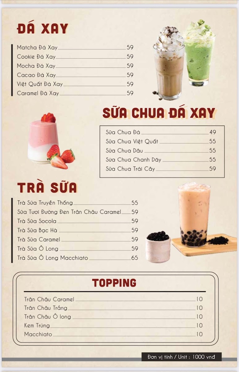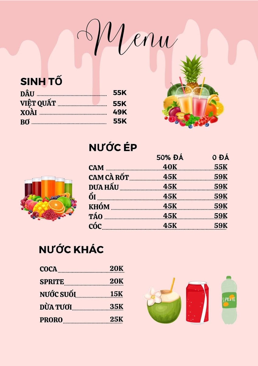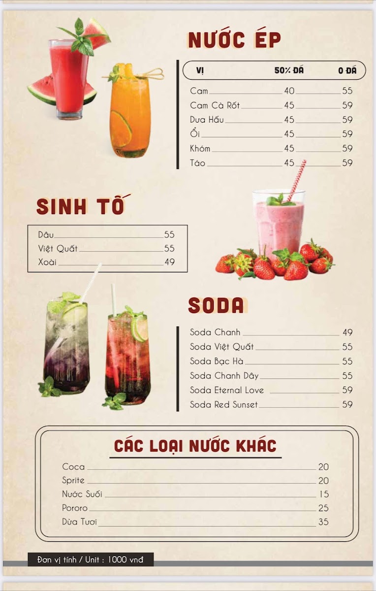 - Beverages: Indulge in aromatic coffee and refreshing teas starting from just ₫39,000, or treat yourself to delightful smoothies, yogurts, and bubble teas priced between ₫49,000 to ₫65,000. Don’t miss the fresh fruit juices and soda options!