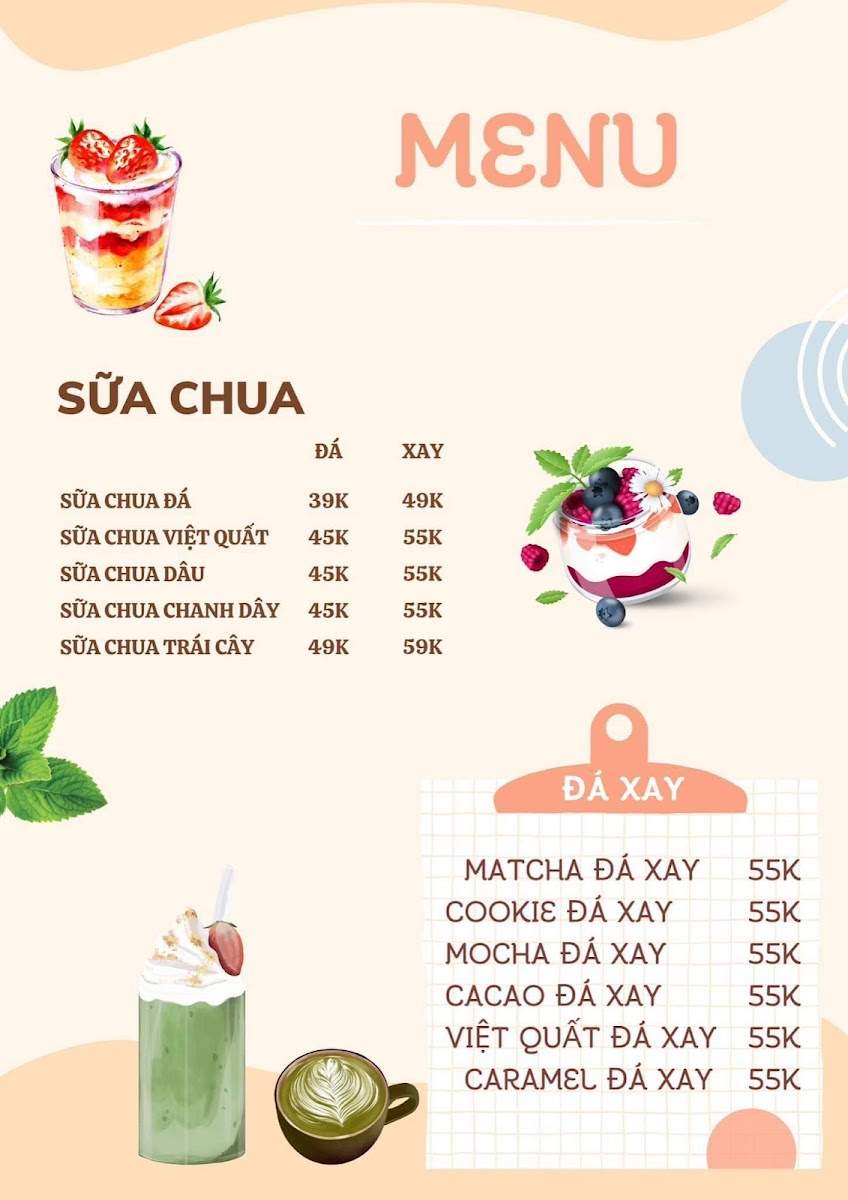 Smoothie, Yogurt and Bubble Tea, price range 49k-65k VND